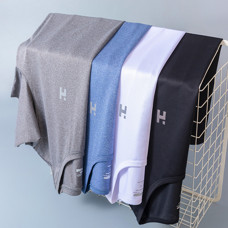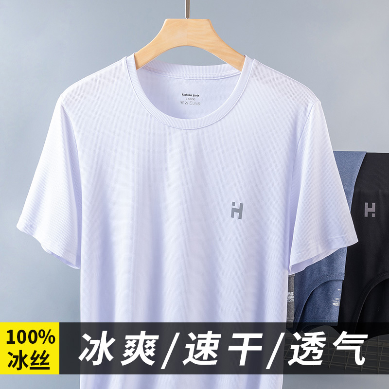 Ice silk short-sleeved t-shirt men's summer thin section quick-drying mesh breathable large size sports fitness loose round neck half-sleeve