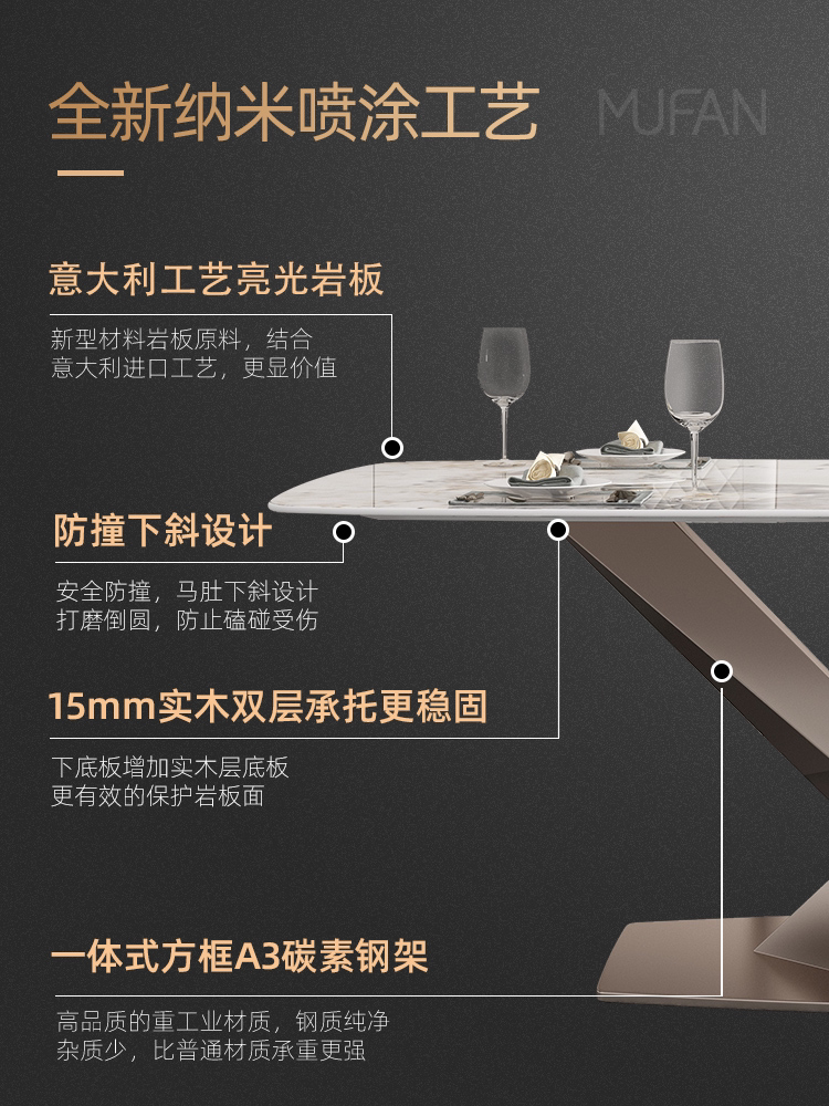 Italian light luxury designer high-end slate dining table home small apartment modern minimalist rectangular dining table and chair combination