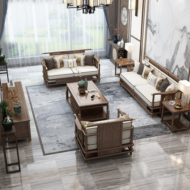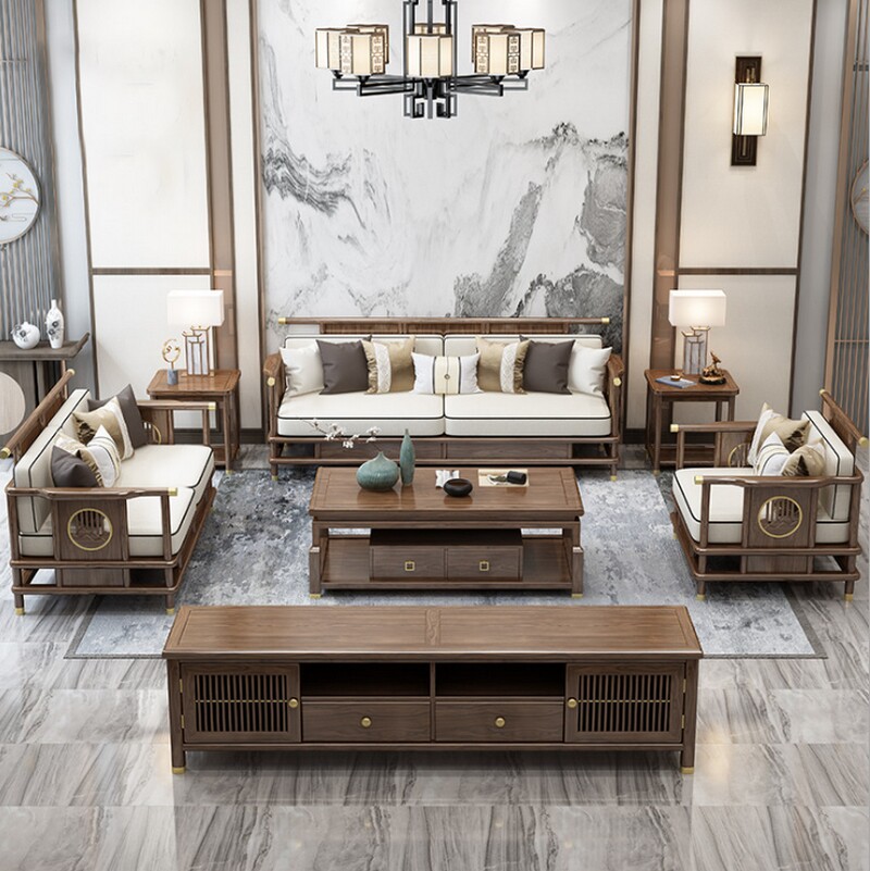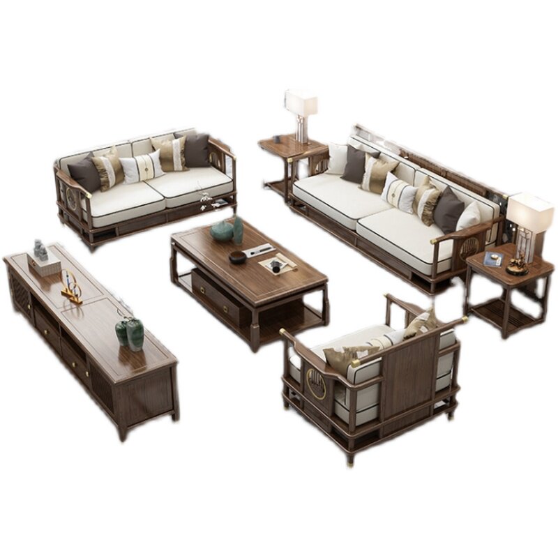 New Chinese style solid wood sofa combination modern minimalist villa living room atmosphere Chinese style Zen ash wood furniture