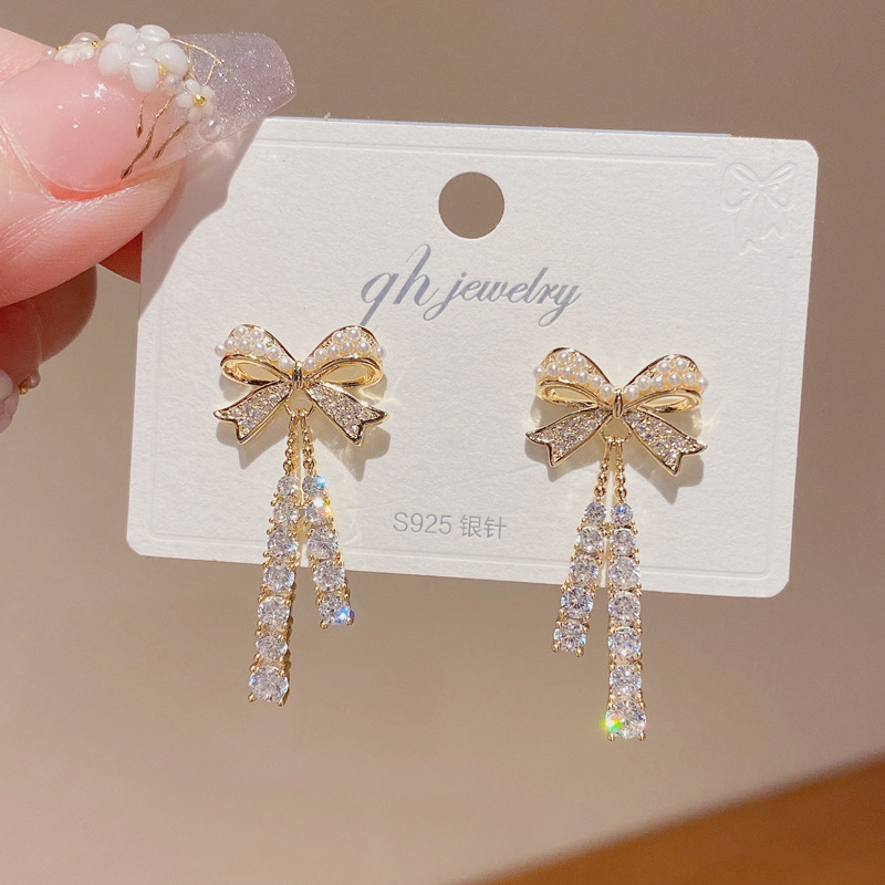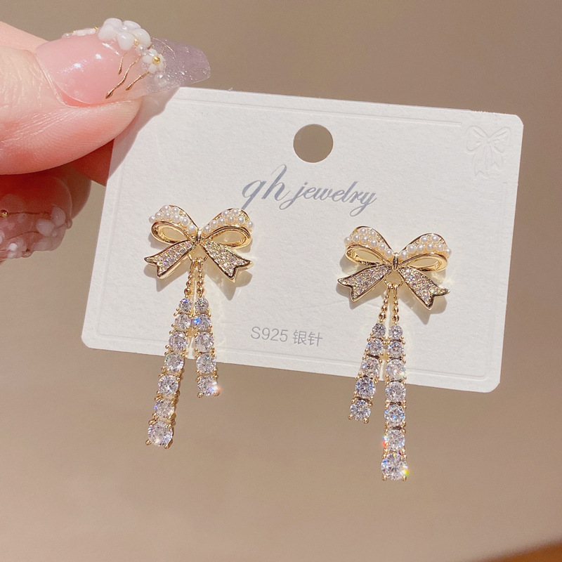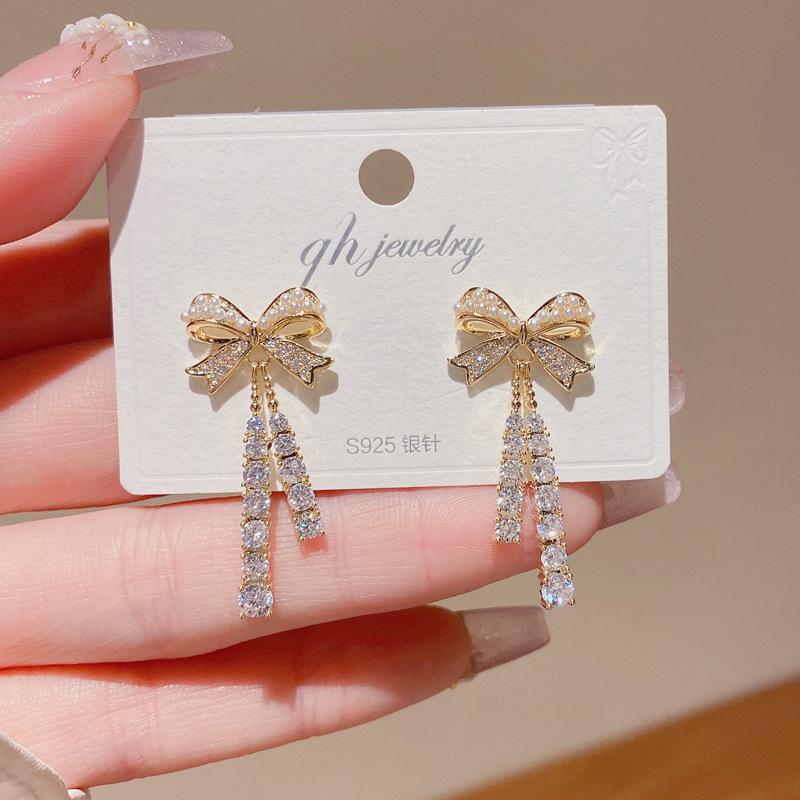 In 2022, the new tide butterfly bow earring female summer high sensitive luxury high - quality 925 silver needle against allergic ear crashes