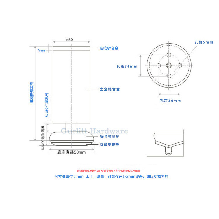 Gold cabinet feet Aluminum alloy cabinet feet Adjustable bathroom cabinet feet TV sofa furniture support feet Hardware cabinet feet