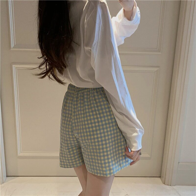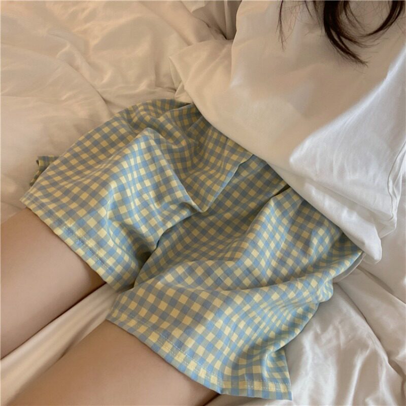 Rouge girl sweet and cute summer plaid home shorts five points pajama pants women's summer loose casual pants cotton