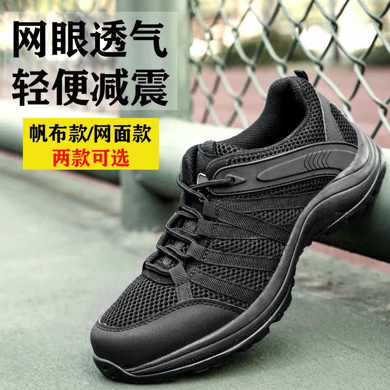 Summer black combat training shoes men's ultra-light mesh running training shoes women's low-top wear-resistant ground security security shoes tactical shoes