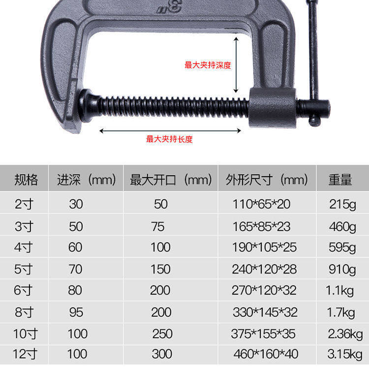 G Character Clip C Type Clip Universal Iron Clamp Powerful Woodworking Fixed Clamp Clamps G Type Thickened F Clip Multifunction