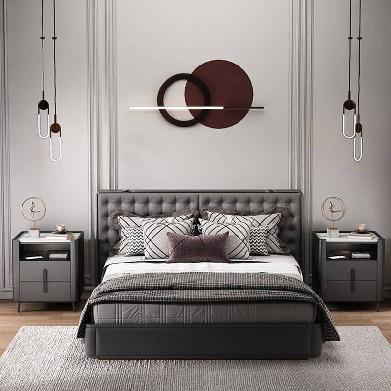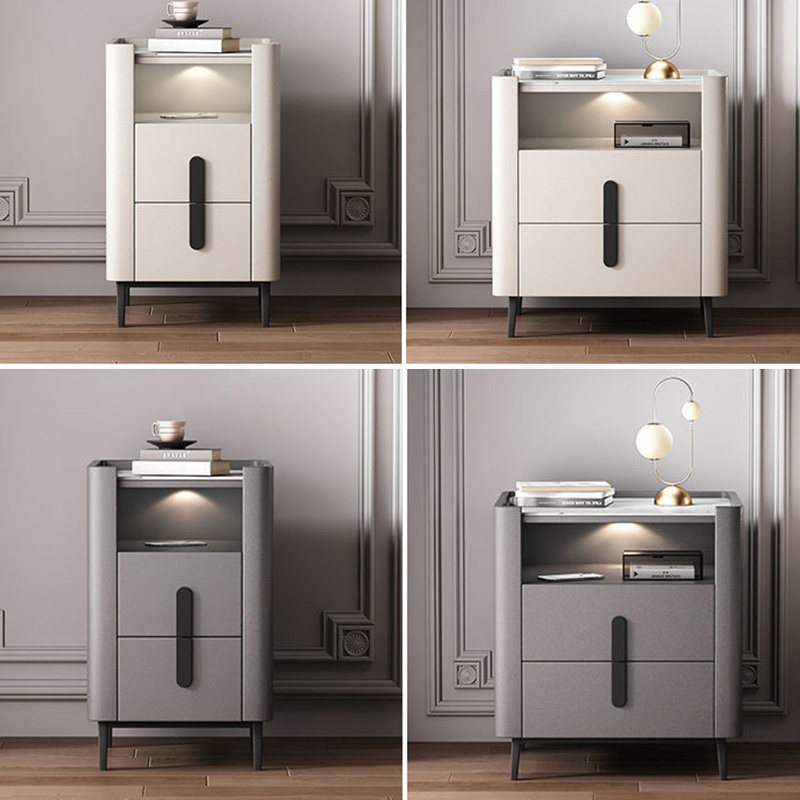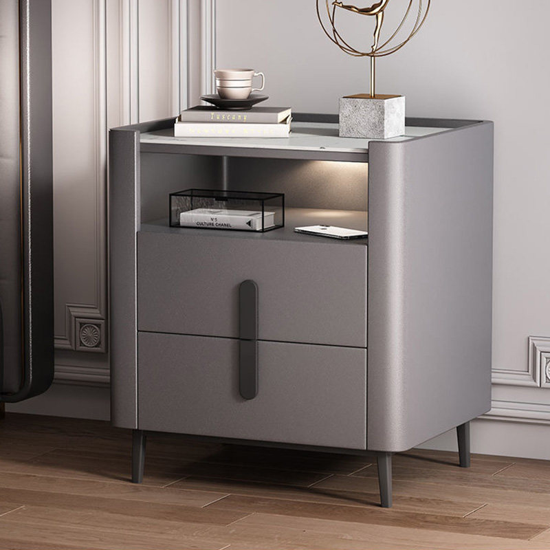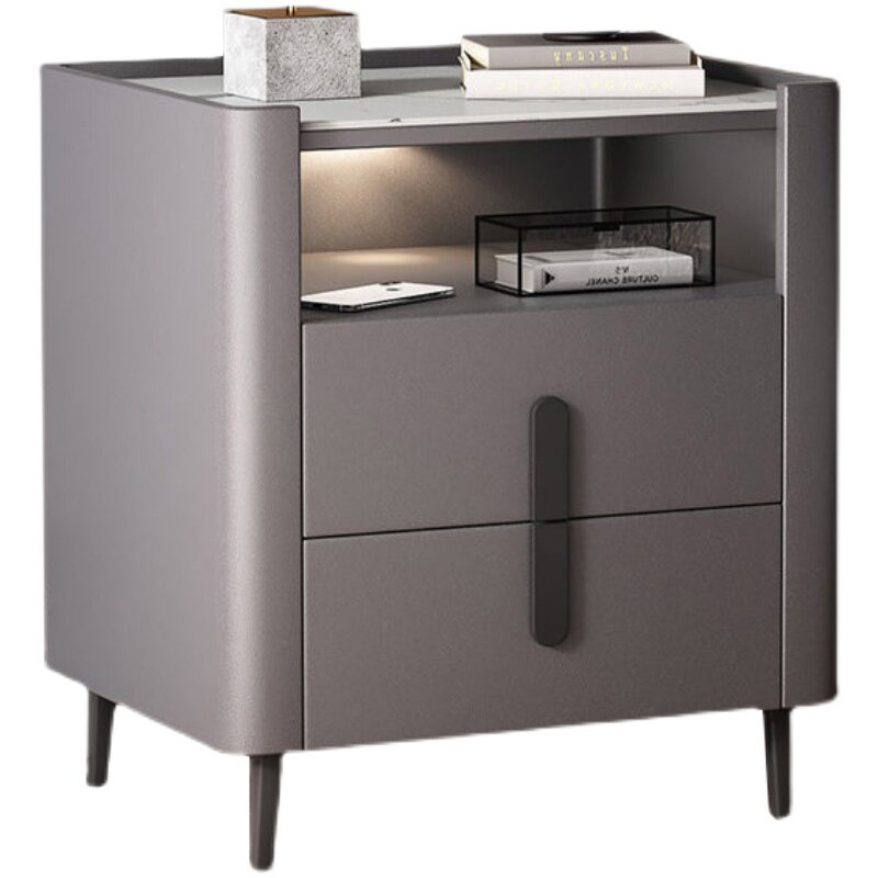 Light luxury rock slab bedroom bedside table square side a few corners a few living room solid wood sofa side table three-tier large storage tea table