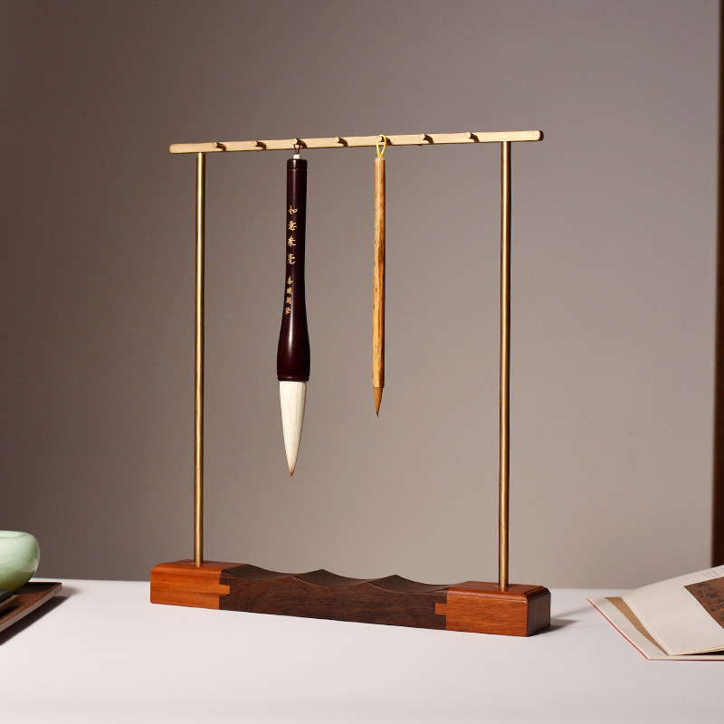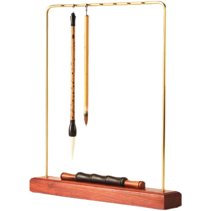 Retro pure copper pen holder writing brush hanging new Chinese style simple hanging frame multifunctional writing brush rack solid wood Wenfu room containing frame