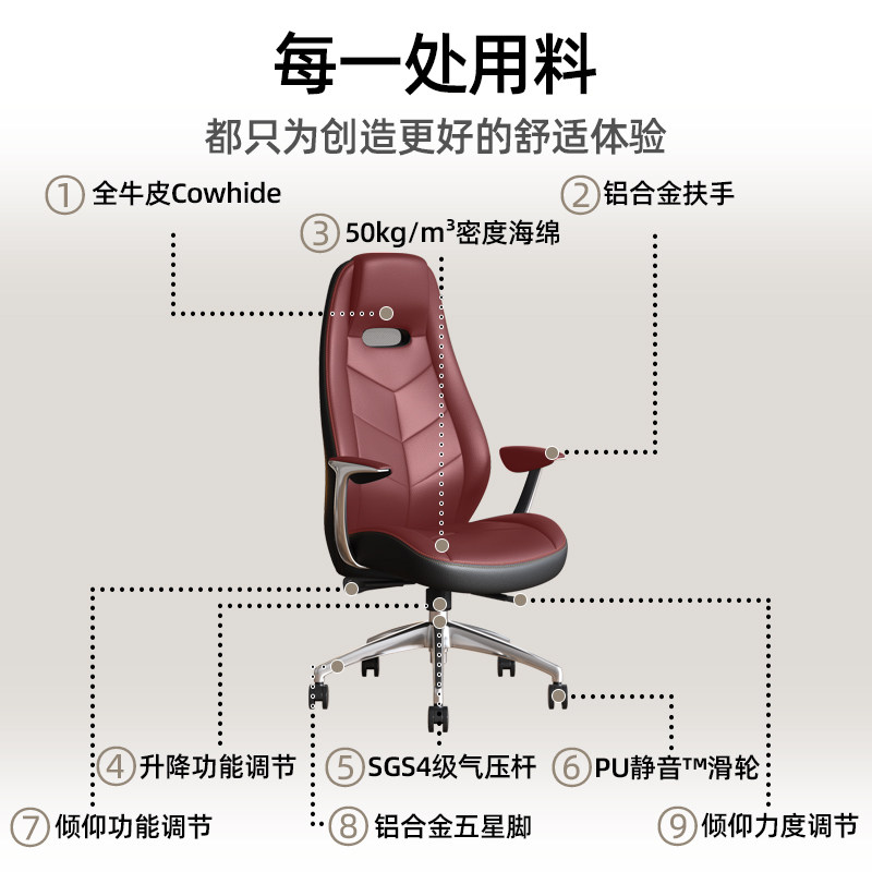 Fukai Boss Chair Office President Office Chair Home Comfortable Sedentary Leather Computer Chair Reclining Engineering Chair