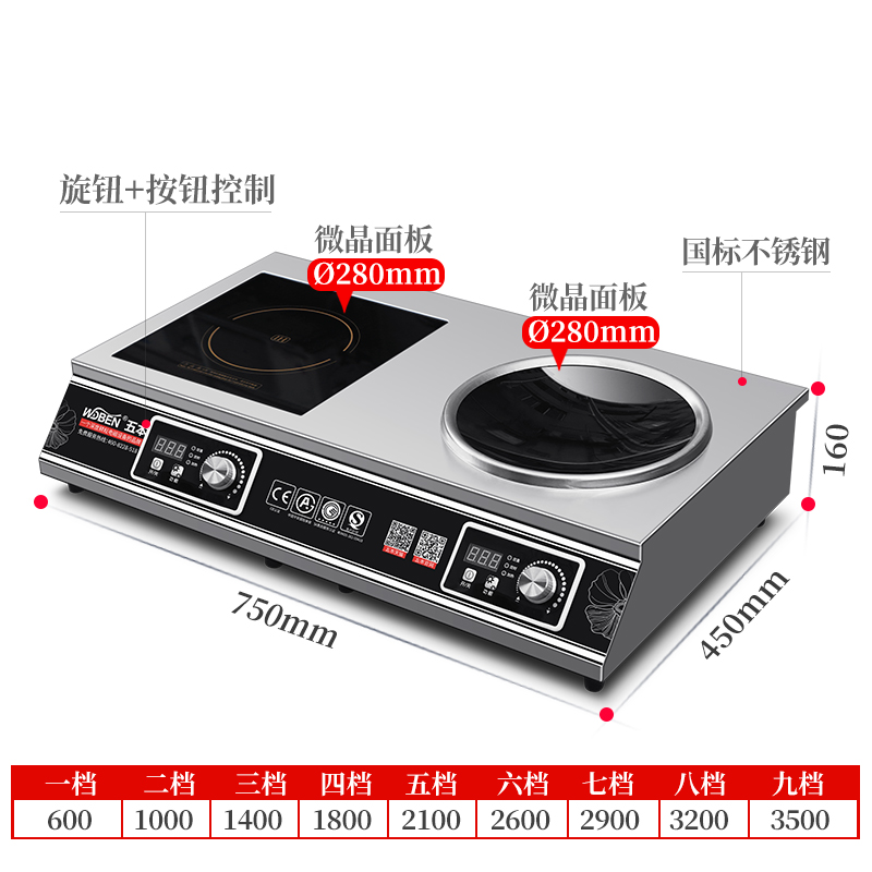 Five commercial electromagnetic oven 3500W high power flat concave combination commercial electromagnetic oven flat surface fried furnace