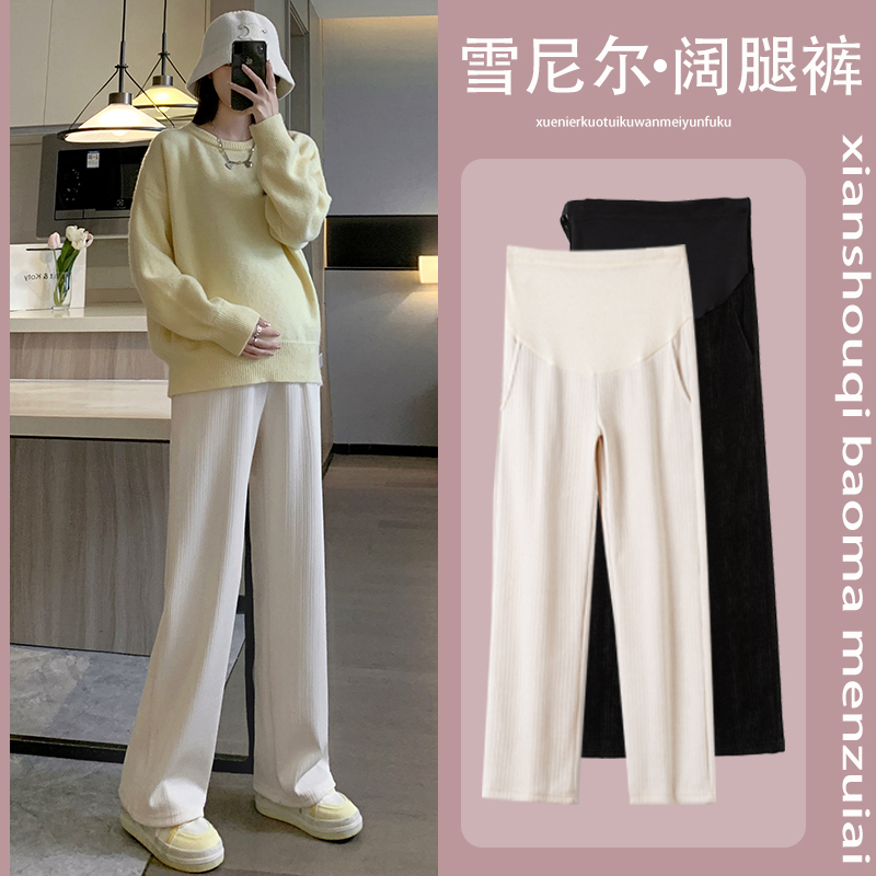 Pregnant Woman Pants Autumn winter Outer wear wide leg Pants Plus Suede Thickened Spring Autumn Dress Loose Fashion Casual Gestation-Taobao