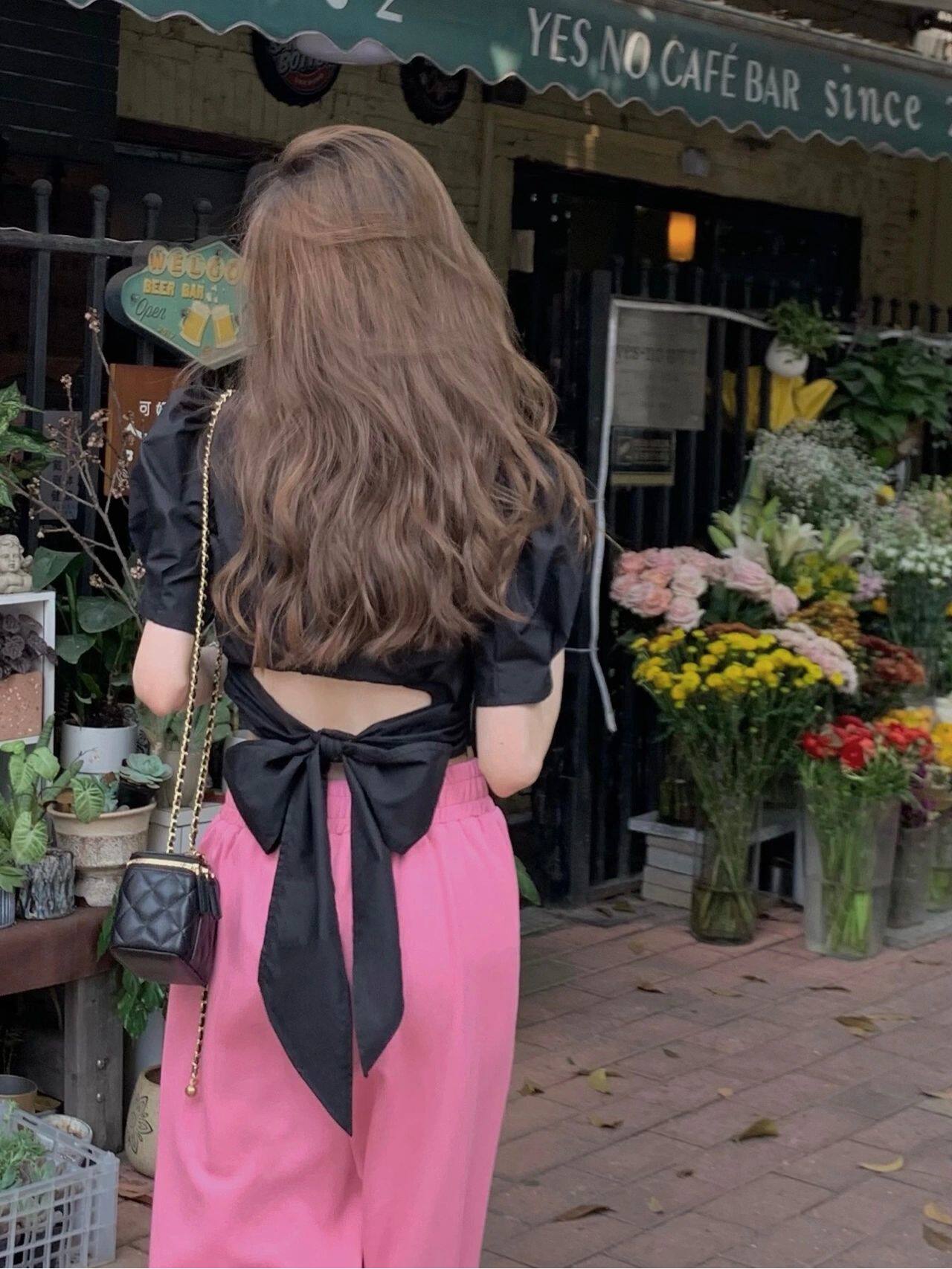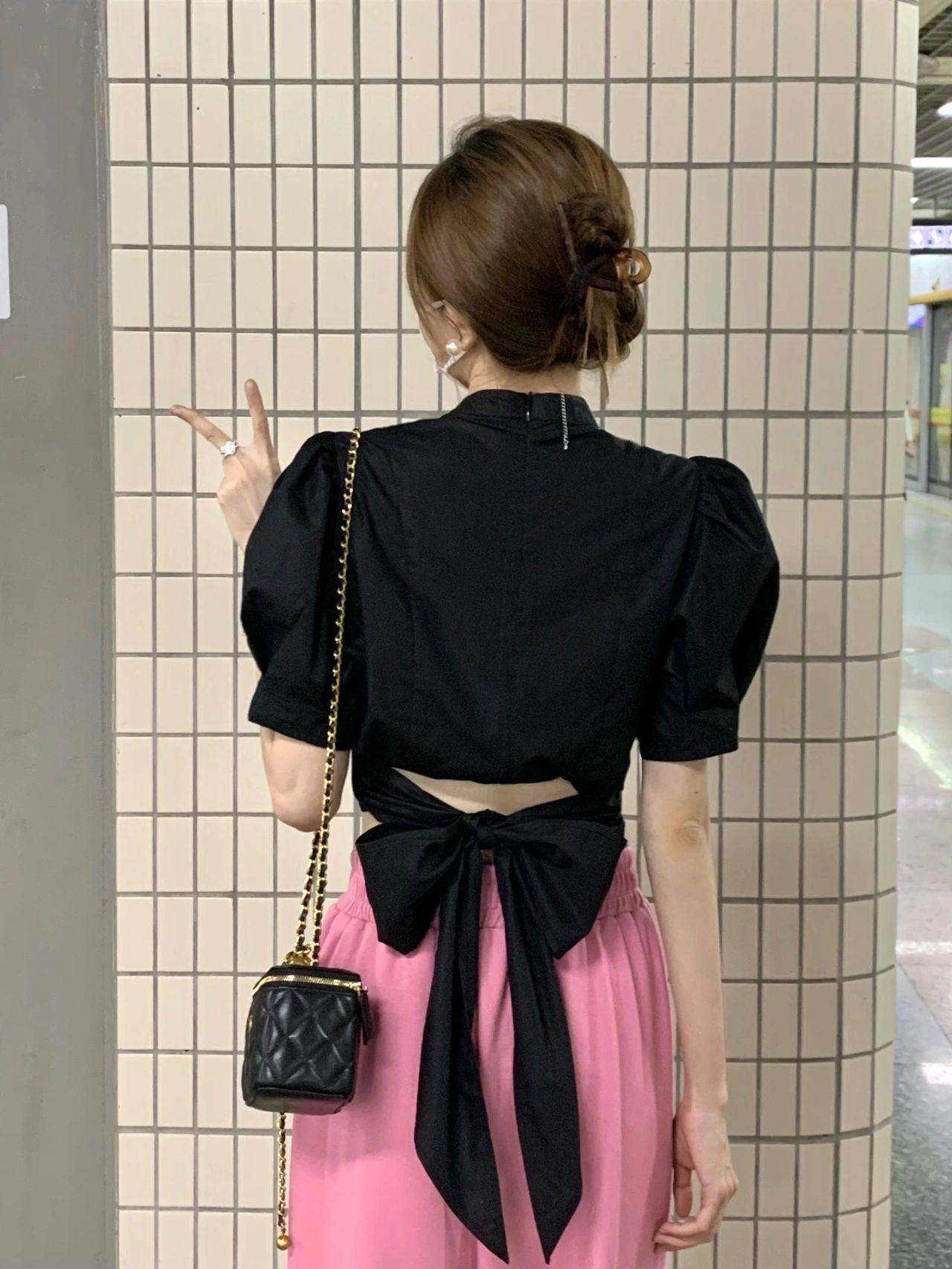 Black Swan ~ Summer sweetness Blistering Blister Butterfly Knot Shirt Woman Falade Style Small Crowdsourced shorts shorts