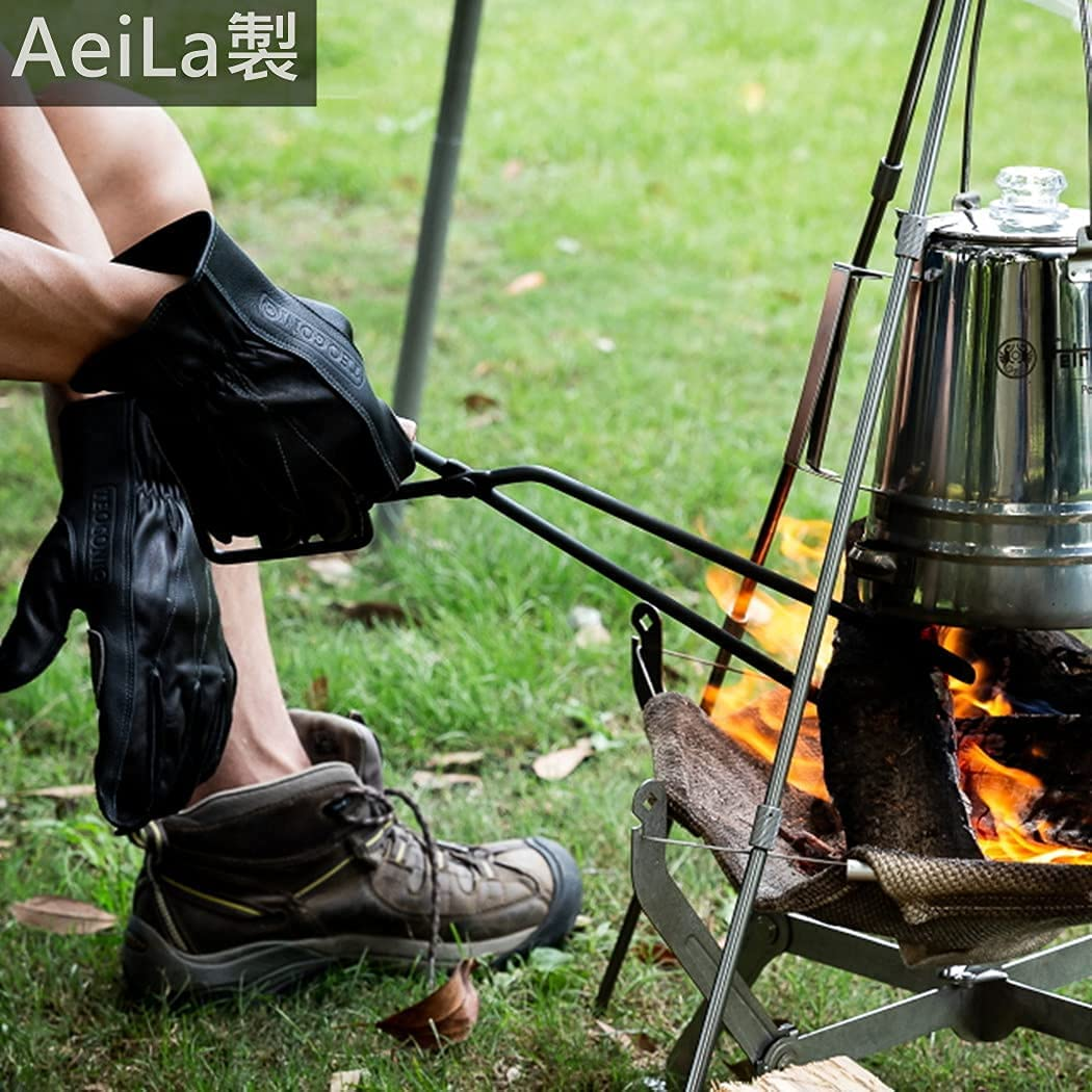 Beech wood shank fire tongs * 1 leather set BC flame retardant gloves