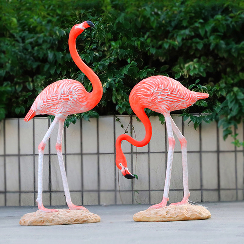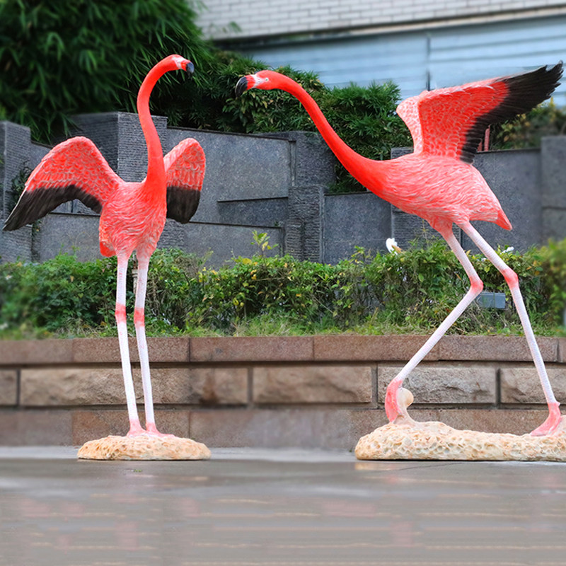 Outdoor courtyard large flamingos wedding celebration engagement decoration lawn glass steel simulation animal sculpture