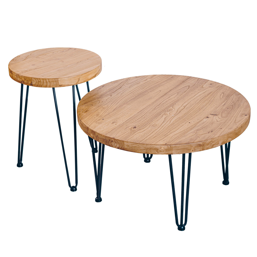 Deserted Collection) Small Family Type Solid Wood High And Low Combined Tea Table Log Silence Wind Old Elm Wood Tea Table Nordic Iron Art Round Table-Taobao