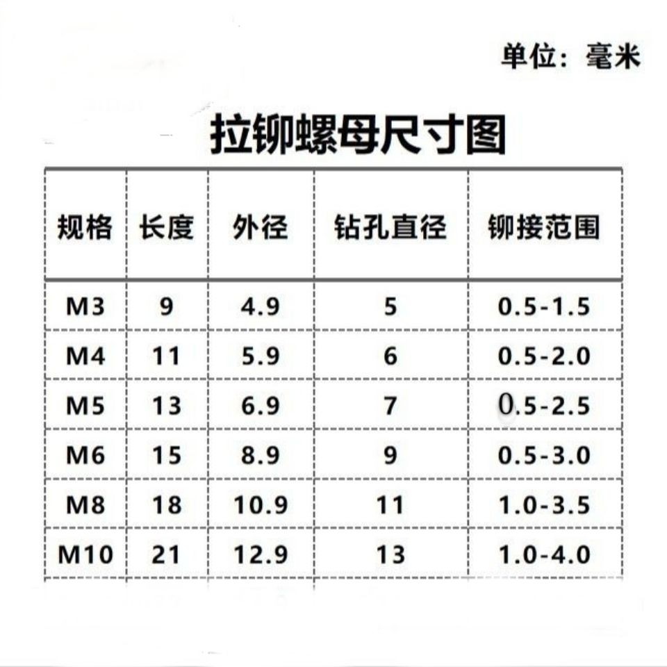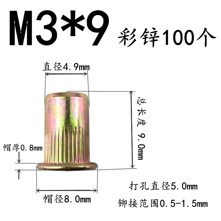 Nut Rivet Nut Nut Gun Bullet Countersunk Nut M3 M4M5M6M8M10 Color Zinc Rivet Nut Rivet
