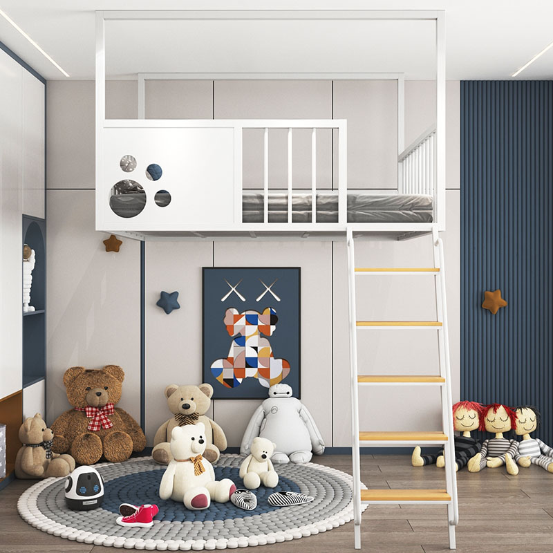Children's elevated bed small apartment on the bed and under the empty duplex second floor bed simple modern single-upper wrought iron hammock suspension
