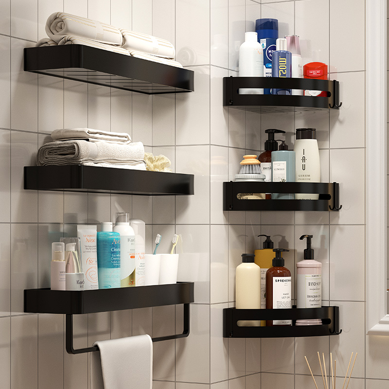 Bathroom shelf wall mounted type punch-free toilet bathroom bathroom bathroom towel towel to collect wall hanging