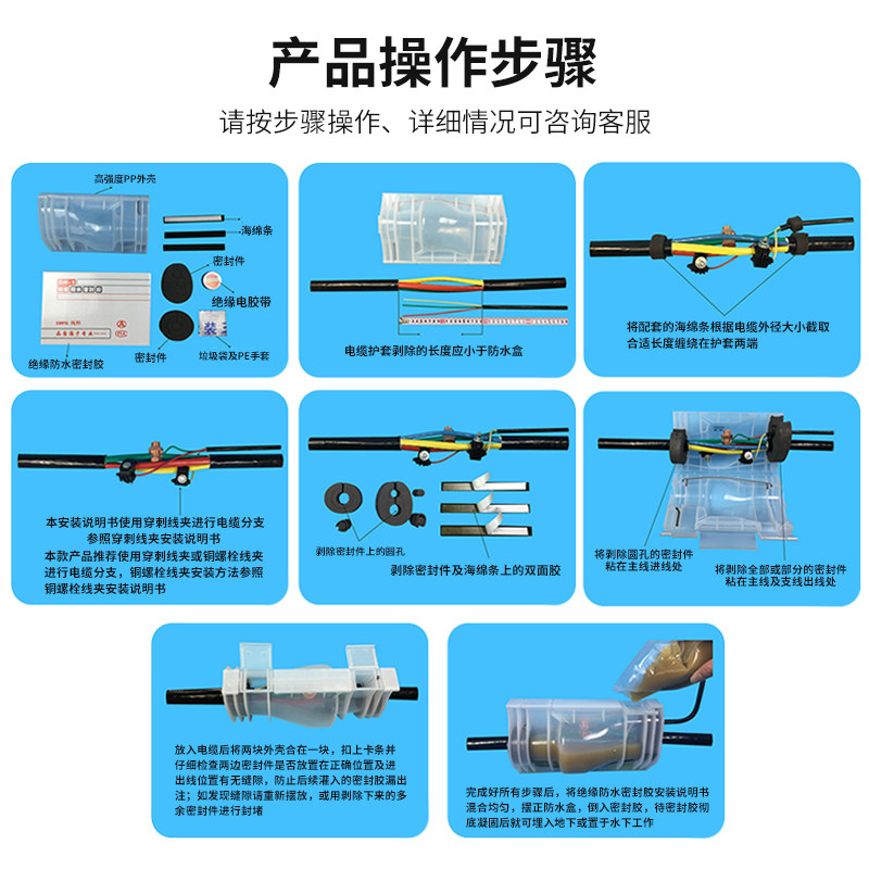 Outdoor glue-filled waterproof junction box water underground well buried branch one-in-two-out three-way cable power protection