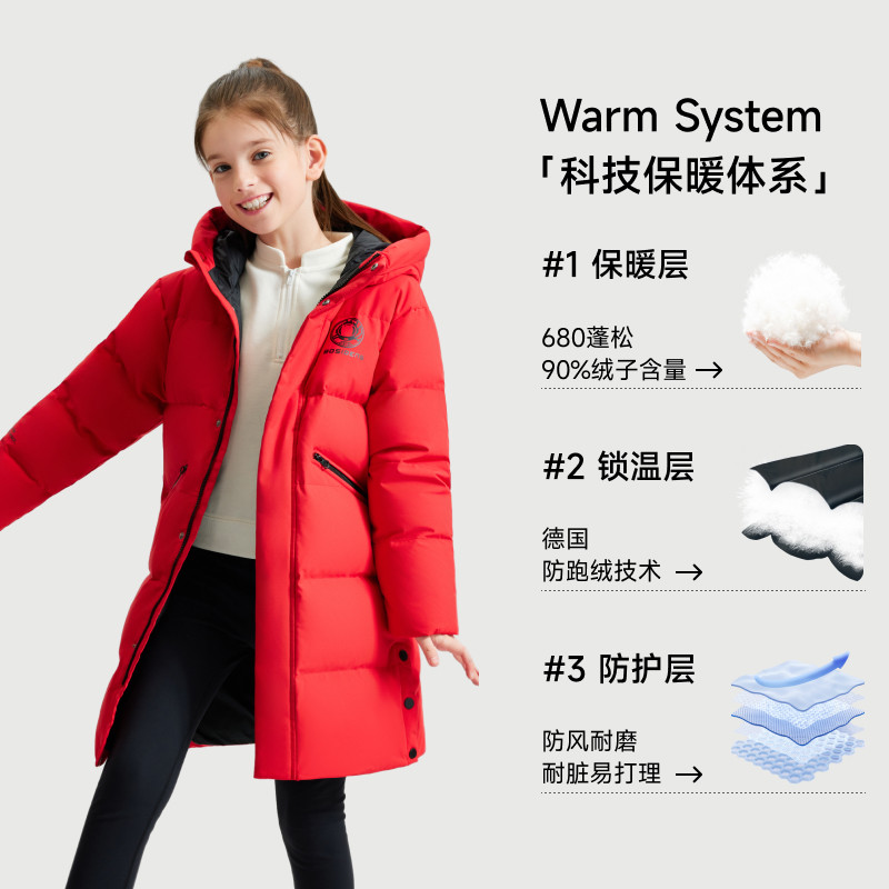 Poddon children's down clothes men's jacket thickened foreign air medium long New Year's red women CUHK children's hat winter dress-Taobao