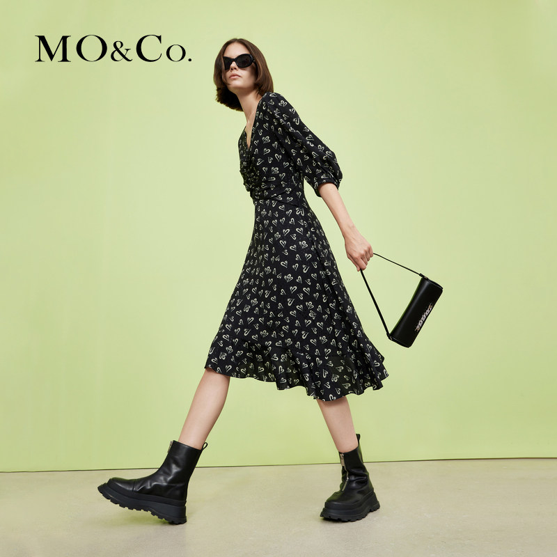 MOCO Fall New Horticultural Winewear dress V Pilot Blister MBB3DRST28 Advanced Sensational Style-Taobao