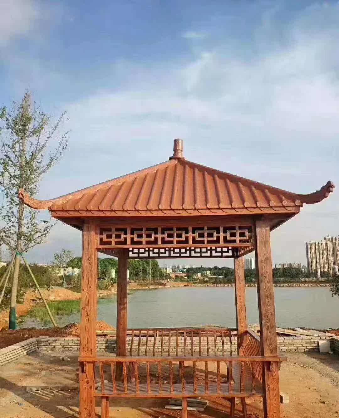 Outdoor imitation wood pavilion garden courtyard tent four-corner pavilion leisure farm site tea pavilion PC outdoor pavilion