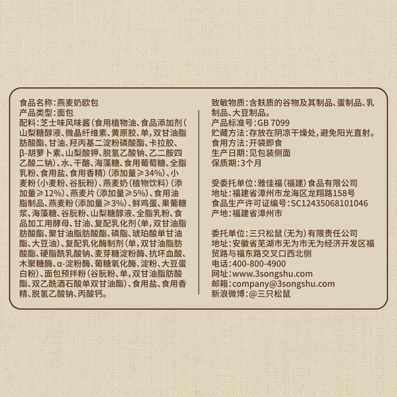 (Three squirrels _ Oatmeal Bag 425g) Healthy snack bread whole box of small cake breakfast food whole wheat