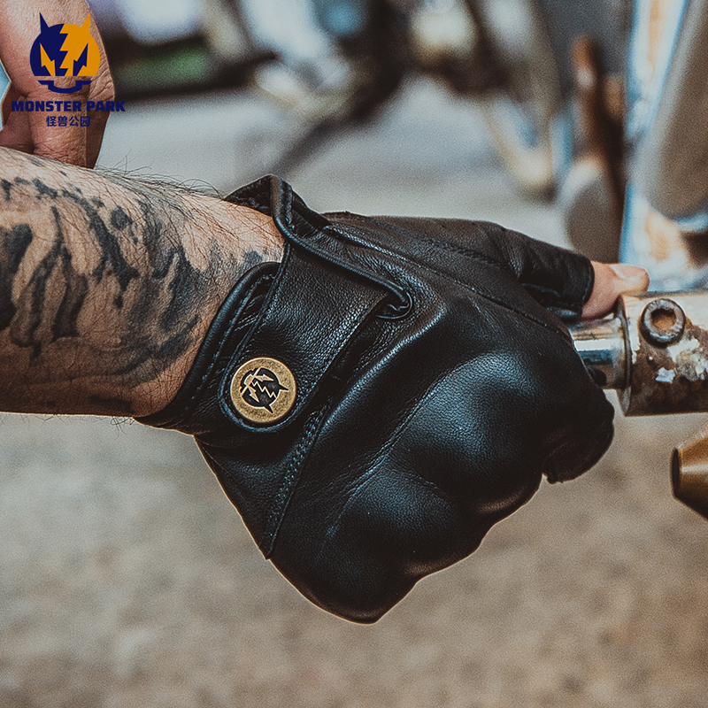 Alien snail Monster Park motorcycle gloves half finger summer men's and women's leather retro riding equipment 002