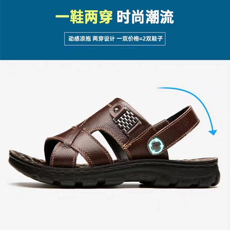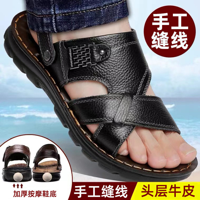 Sandals men's 2022 new leather thick bottom beach summer outer wear dad non-slip wear-resistant dual-use sandals and slippers for men