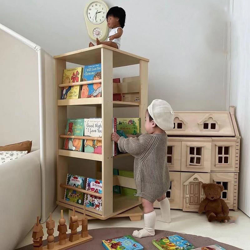 Rotating bookshelf all solid wood children's picture book rack shelf floor-to-ceiling student book storage rack 360-degree bookcase