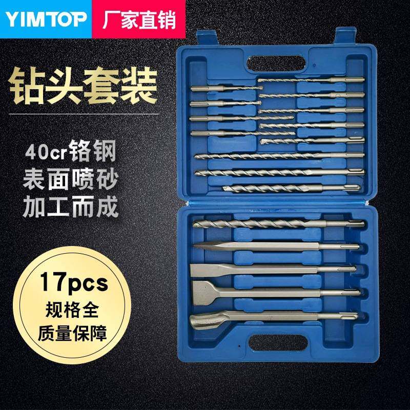 High-end drill bit b-box suit round handle square handle shock 1 head drill 7pcs sleeve plastic electric hammer drill tip flat chisel combined extravagant