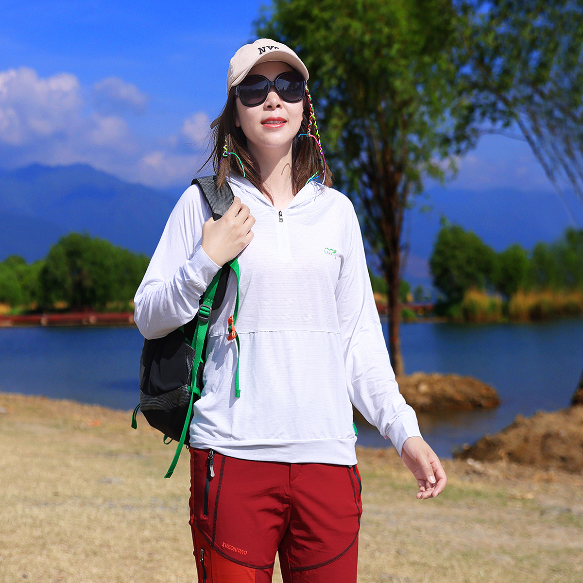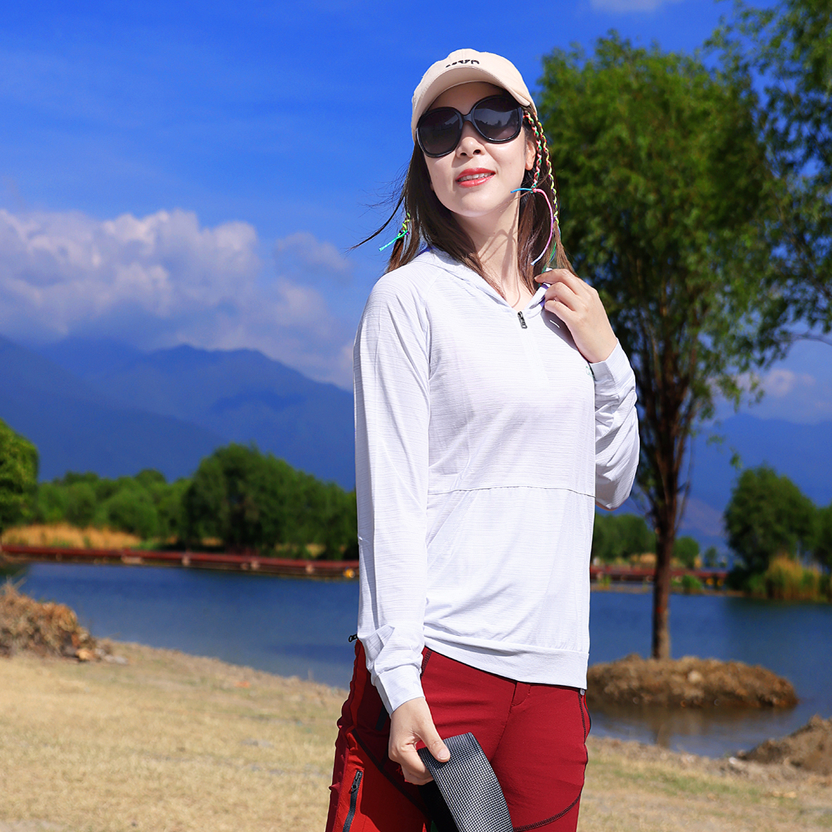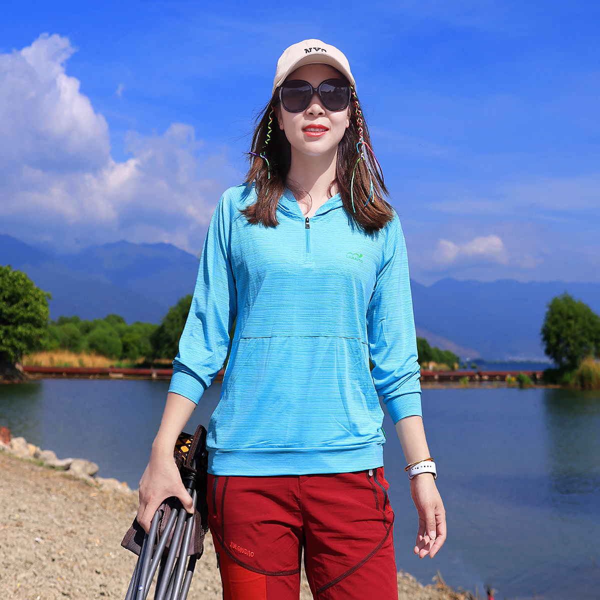Xueqiu Island outdoor summer new hooded striped quick-drying breathable elastic long-sleeved casual T-shirt mountaineering hiking women