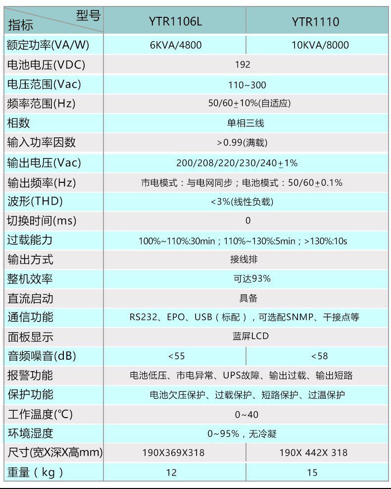 Kuhua UPS uninterrupted power supply YTR1106L tower 6KVA4800W high frequency online outer battery regulatory voltage