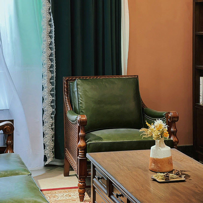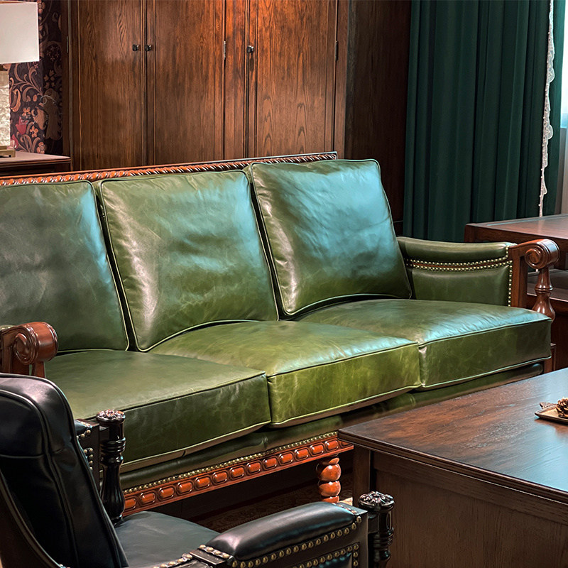 American solid wood sofa living room retro leather sofa combination European small apartment light luxury leather art sofa