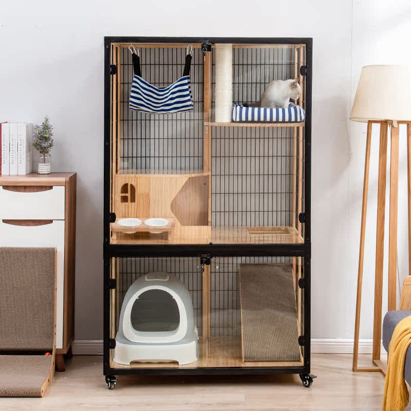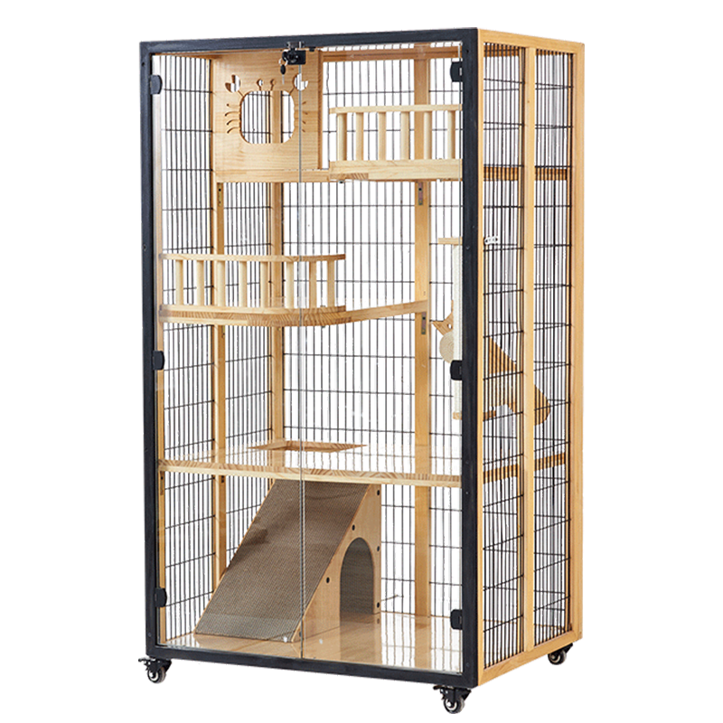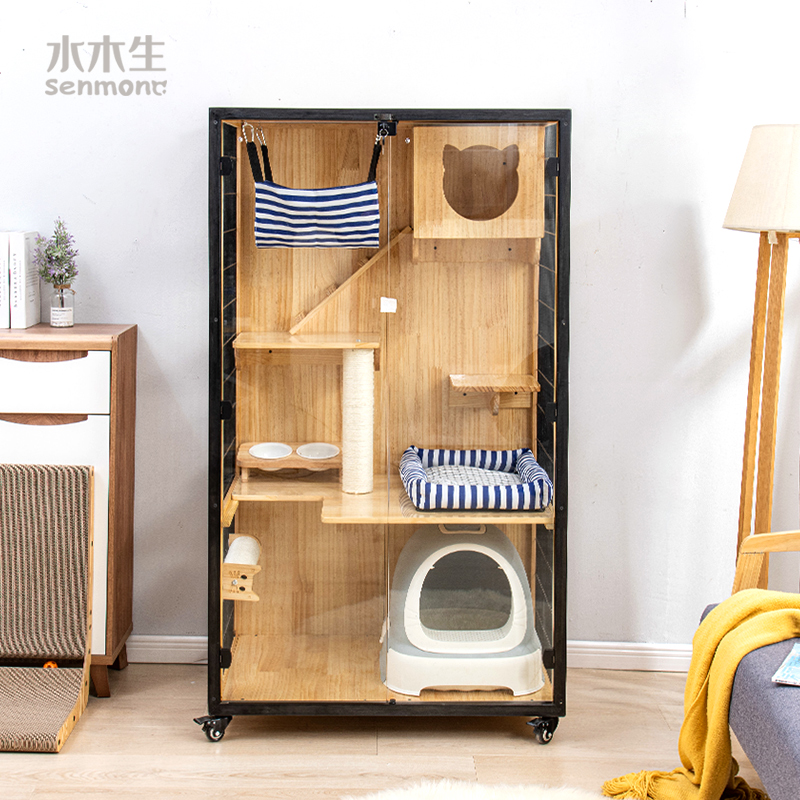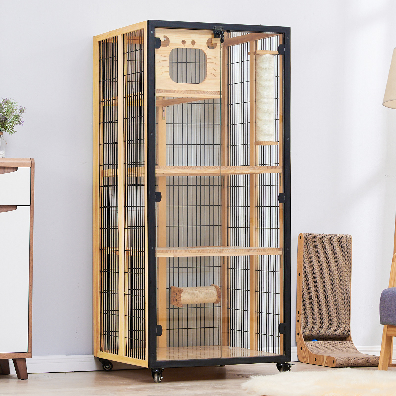 Panoramic cat villa home solid wood cat cabinet oversized free space indoor cat house house large cat cage customization