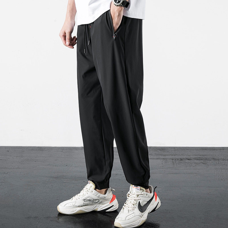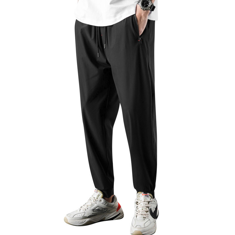 2022 large sizes men's clothing ice silk casual pants men's gattening increased pendant feel elastic speed dry little feet sports long pants