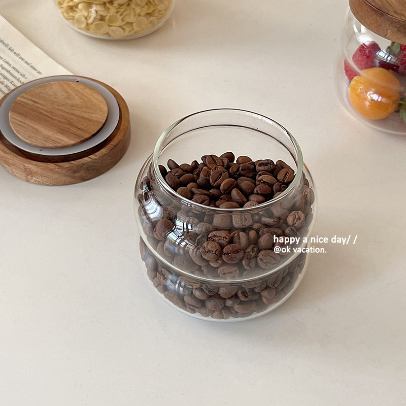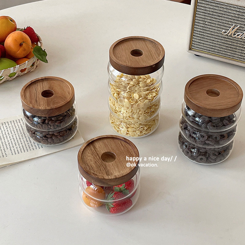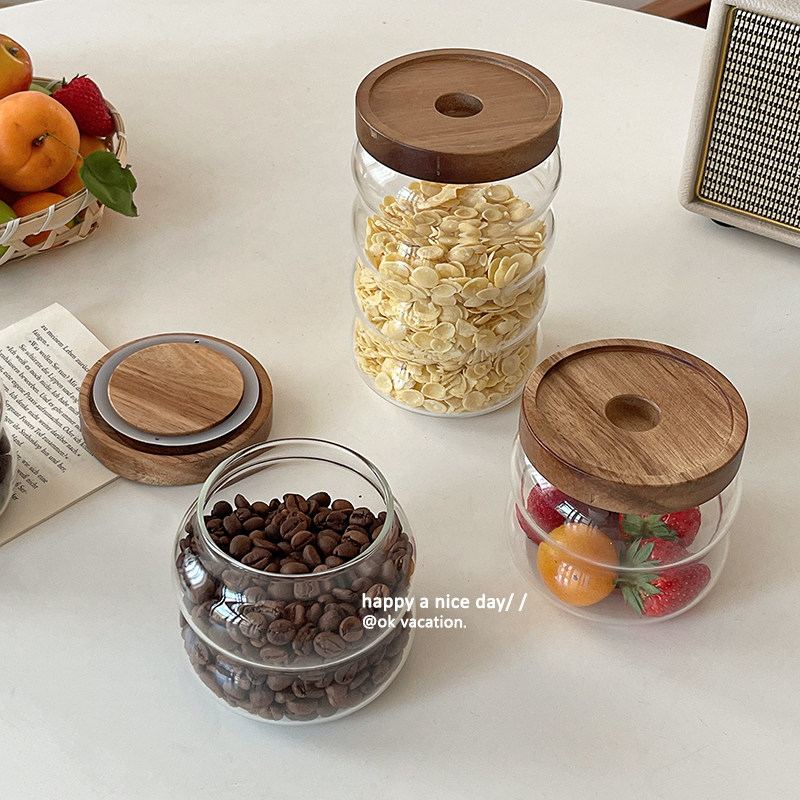 Day Style Sealed Jar With Lid Containing Bottle Wood Cover High Face Value Kitchen Coffee Bean Oat Pasta Containing Glass Jars