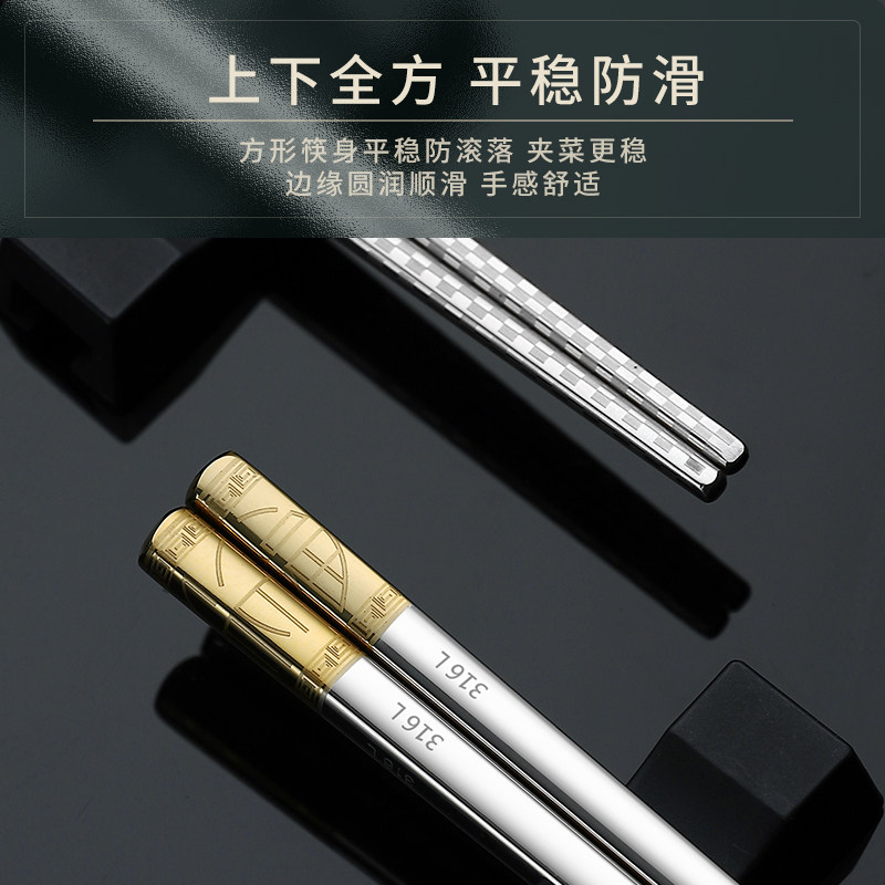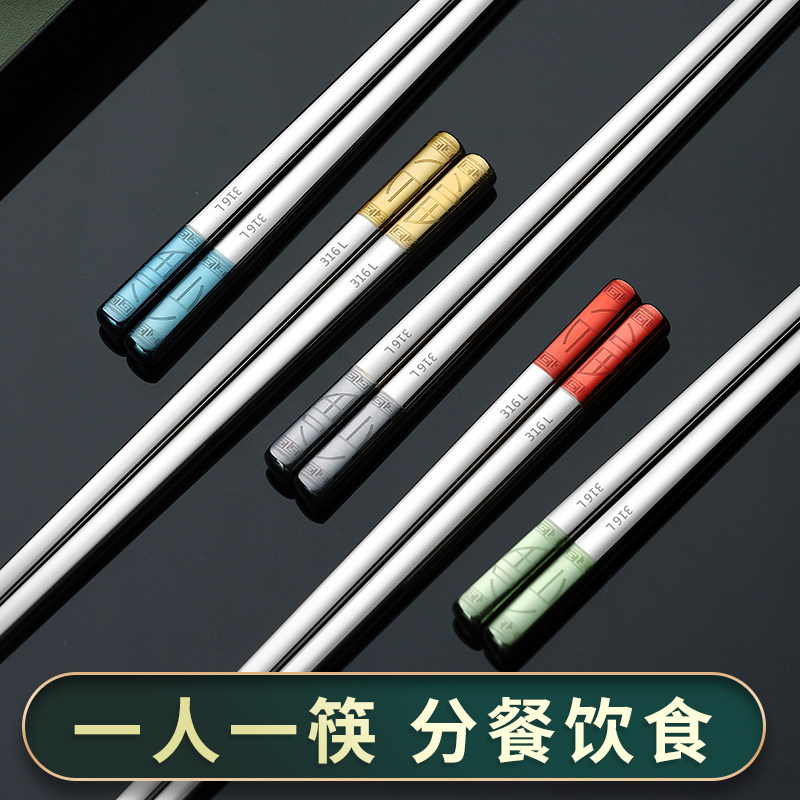 Japan MUJIΕ316L stainless steel chopsticks set household high-end chopsticks one person one chopsticks light luxury windproof