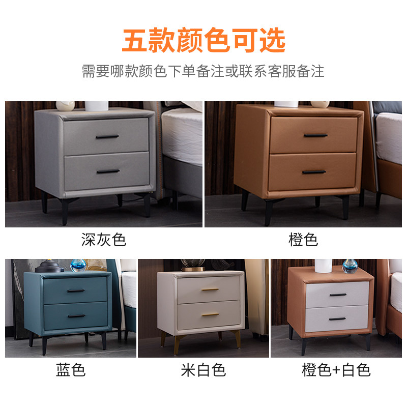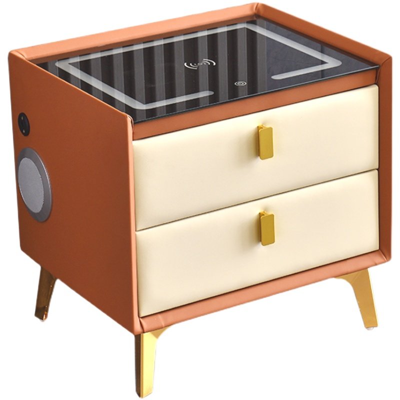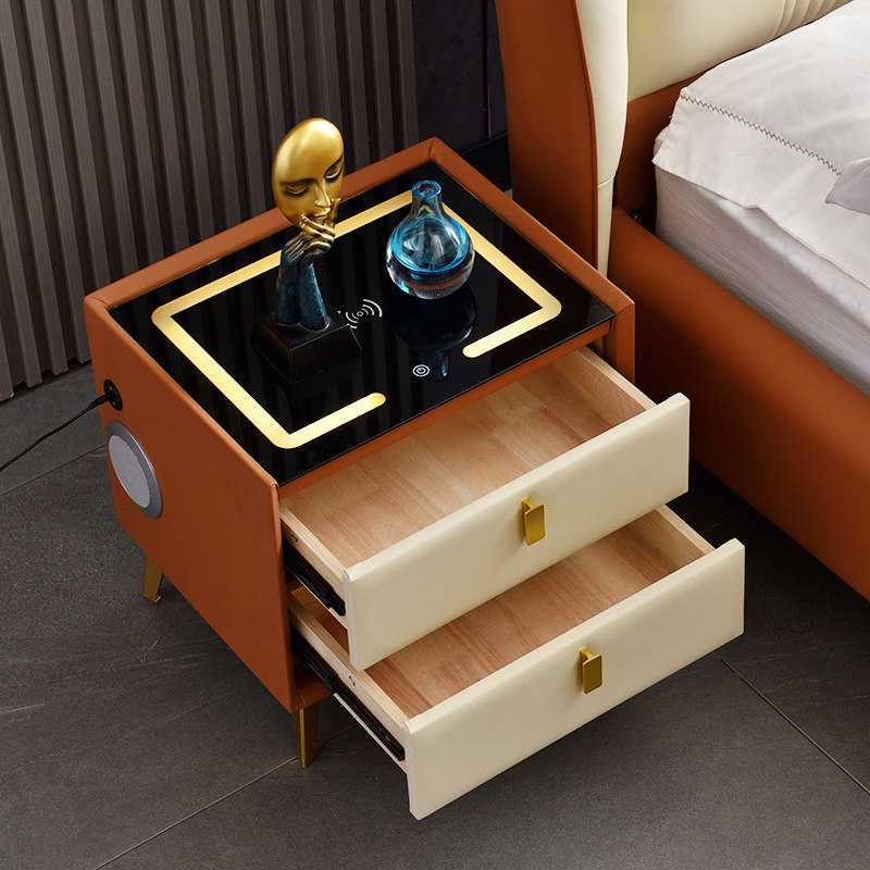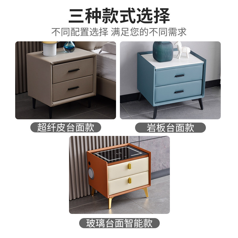 Smart bedside table leather all solid wood bluetooth audio wireless charging multi-functional modern minimalist slate storage cabinet