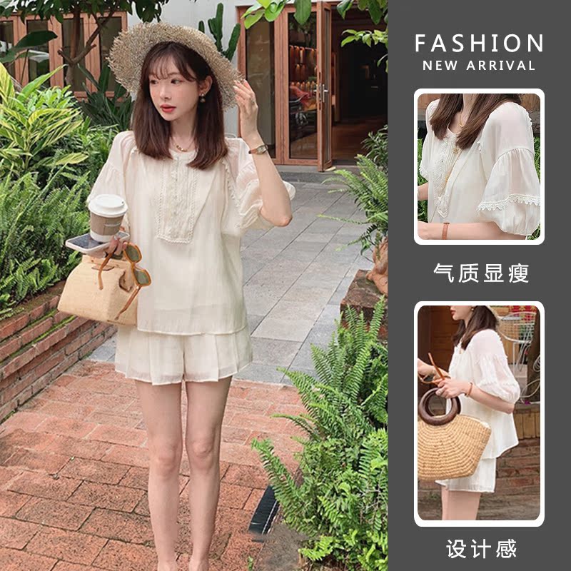 Pregnant woman summer clothing suit out of fashion models 2022 new loose large size for casual sports short sleeve shorts Two sets