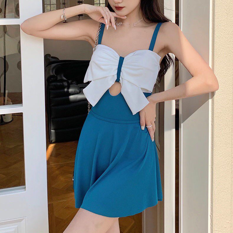 Skirt-style even for a swimsuit in a dress.