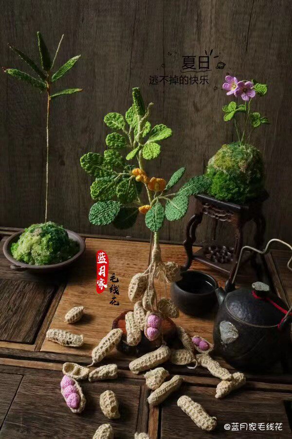 Blue Moon Home Mao Line Flower Peanut Vinegar Pulp Grass Bamboo Crochet material Package (excluding crochet flower pots) -Taobao