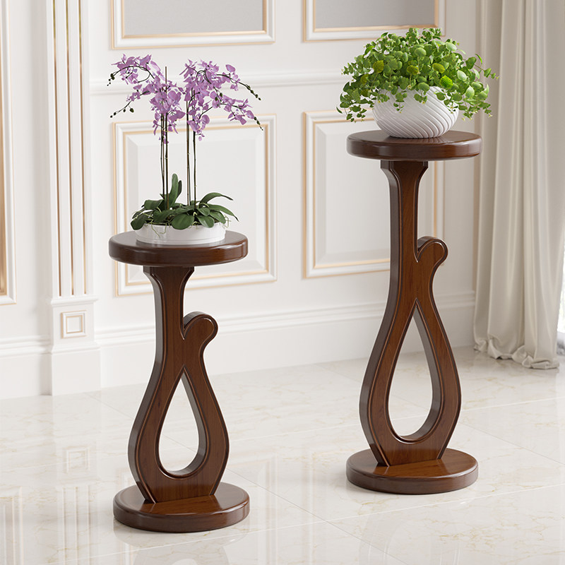All solid wood round flower stand living room modern minimalist flower floor stand wooden balcony plant potted storage shelf