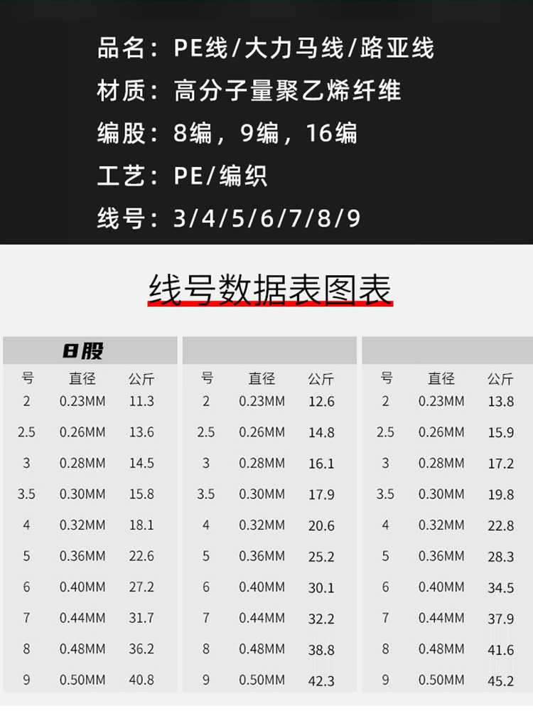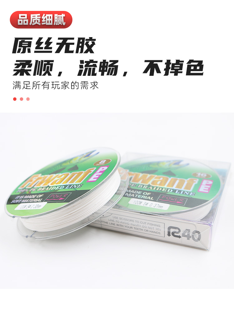 8 braids 100 meters (white raw silk without glue PE wire) 9 braids 100 meters (white raw silk non-adhesive PE wire) 16 braids 100 meters (white raw silk non-adhesive PE wire) 8 braids 40 meters (white