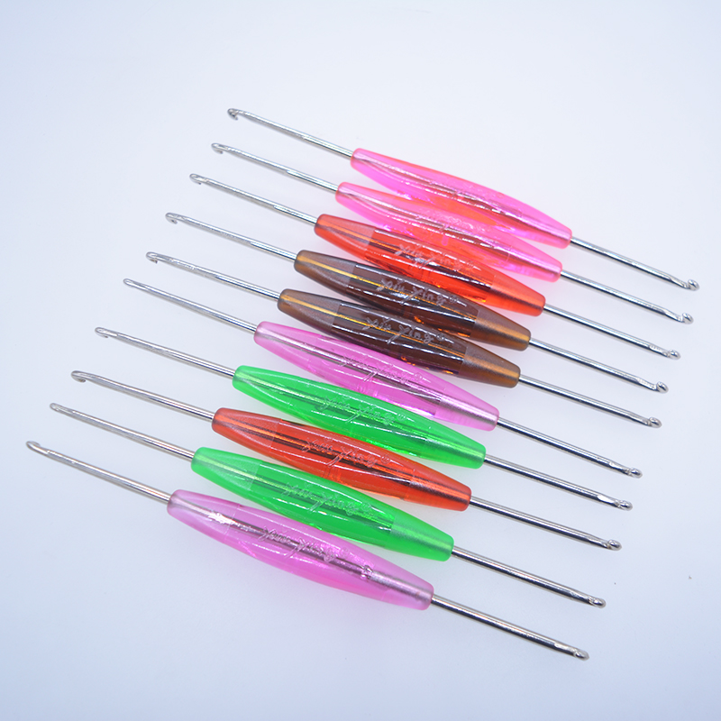 Crystal handle double head thickness crochet wool clothing wool line plastic handle metal hook needle hand weave DIY tool by hand