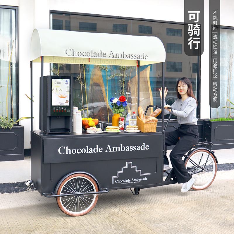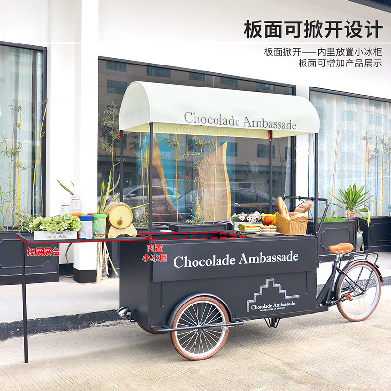 Retro dining car coffee car camp catering ice cream car manpower three-wheeled mobile bicycle shop display display