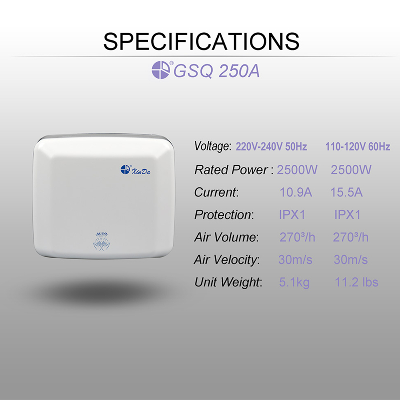 Letter Da GSQ250A Wall-mounted Automatic Induction Roaster Hotel Bathroom Commercial Hanging Wall Type Dry Cell Phone Roaster