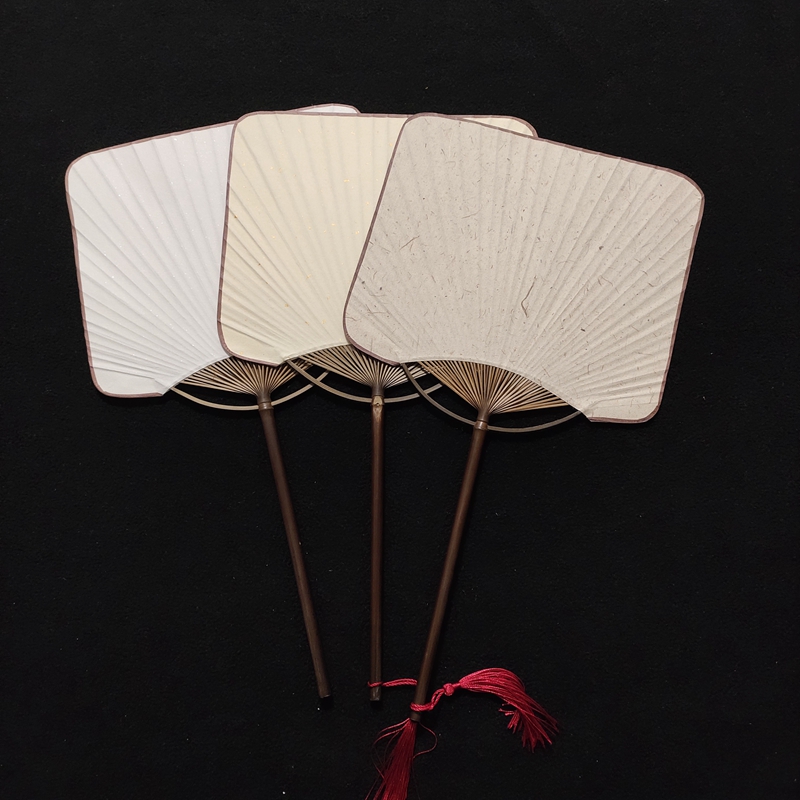 Bamboo bamboo pole long handle square rice paper group fan classical retro style Hanfu fan rice paper half-cooked Japanese style and fan