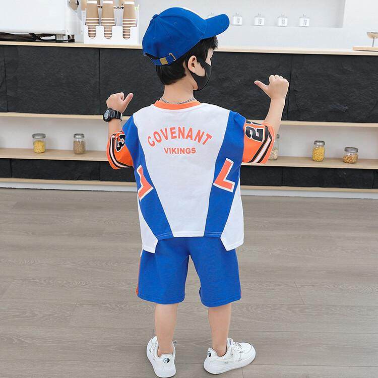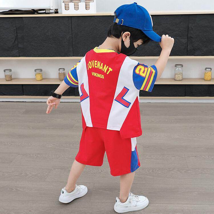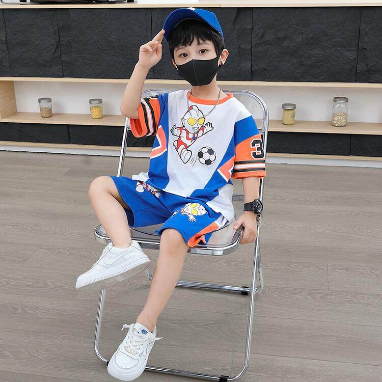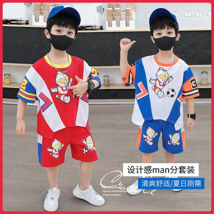 Boy Summer Personality Cartoon Character Altman Set Personality Pattern Casting Lovely Blue Red