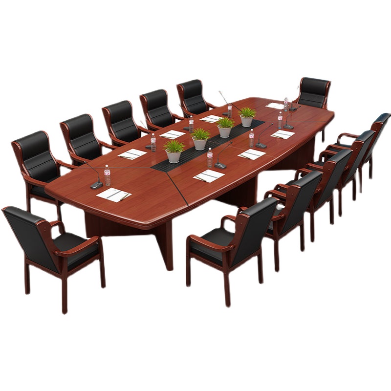 Solid wood texture sticker leather multi-person conference table strip simple negotiation table office reception table small training table
