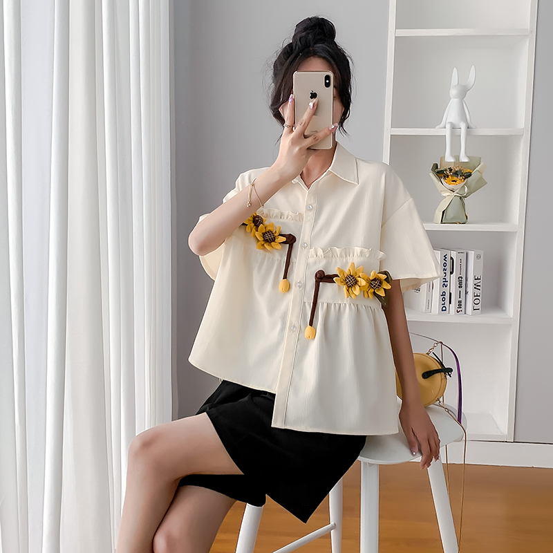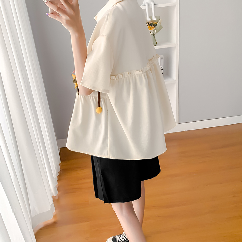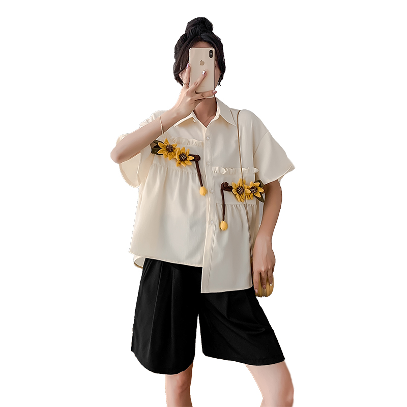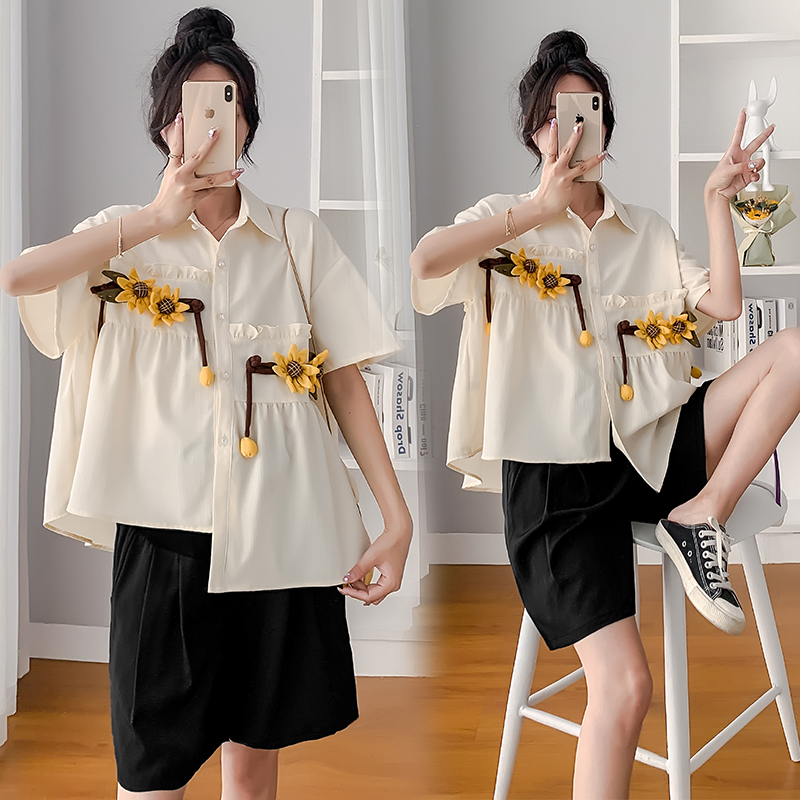 Pregnant Woman Shirt Doll Cardiovert Summer Snow Spinning Blouse Thin Pregnancy Belly short sleeve Summer clothing Han version suit Two sets
