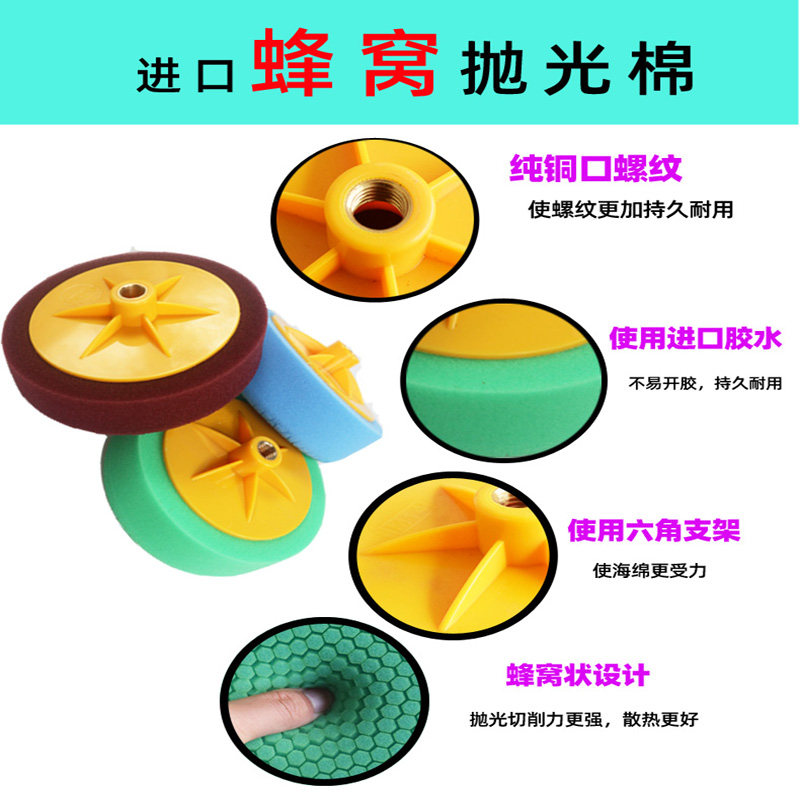 6-inch honeycomb polished marine cotton medium coarse polished cotton car Beauty beating wax theorizer sponge ball mirror reduction pan-Taobao